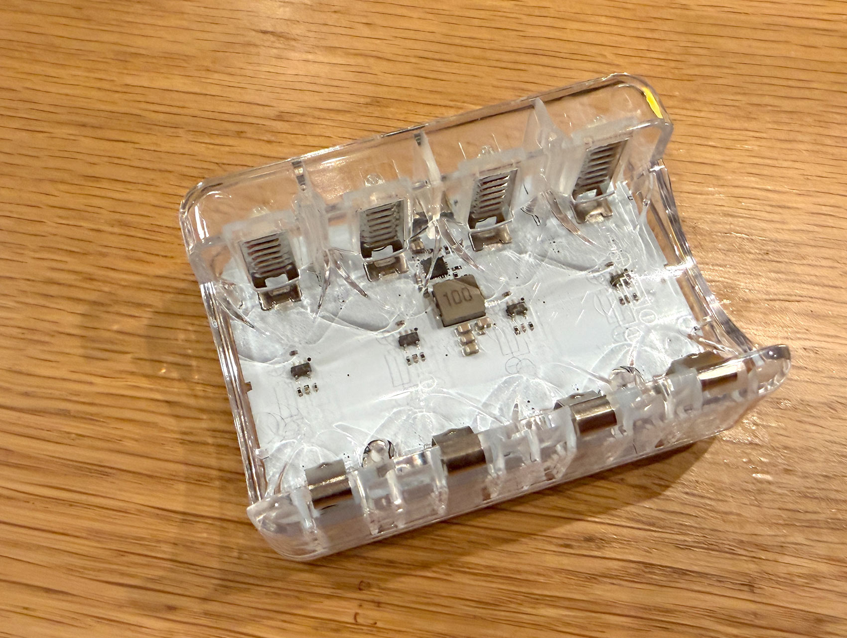 充電器はかなりコンパクトな作りです。スケルトンのボディが90年代を思い起こさせてクールです。